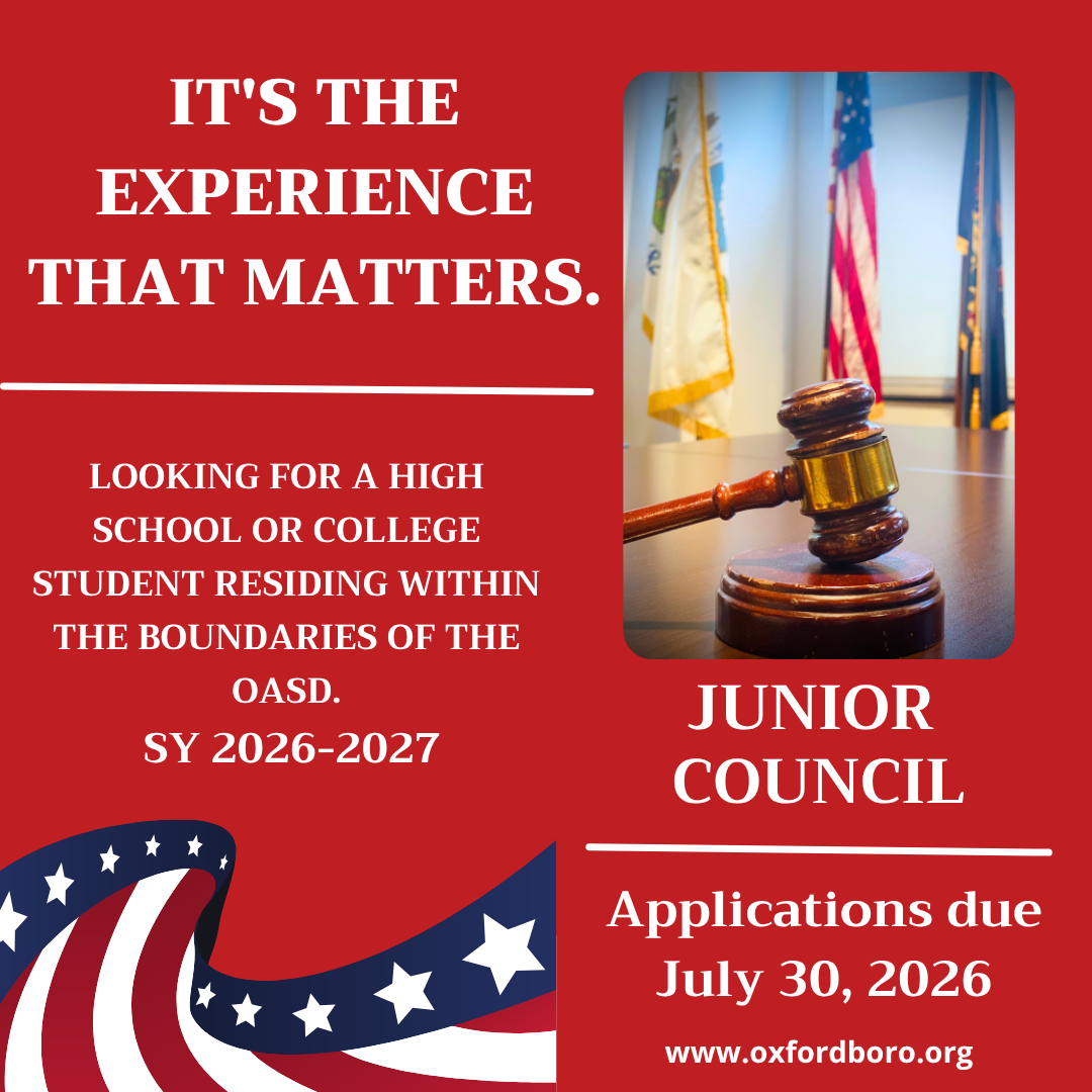 The Borough of Oxford is looking for a motivated and engaged junior or senior to serve as a Junior Council Member!